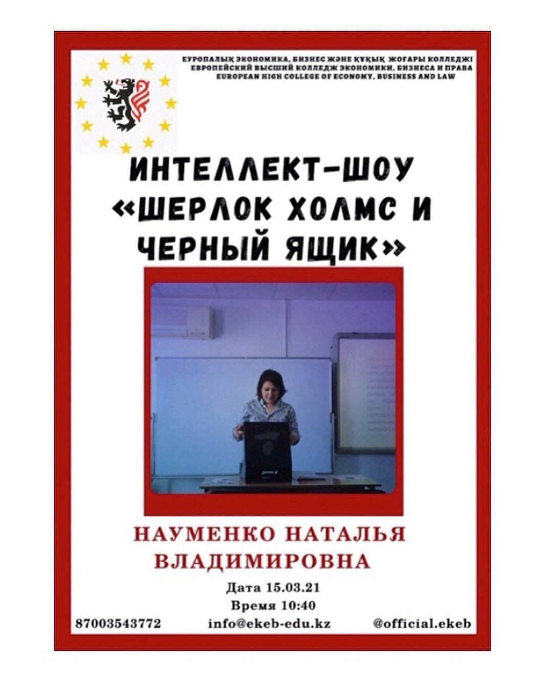 15.03.21 в Европейском высшем колледже экономики бизнеса и права состоялось интеллектуальное шоу «Шерлок Холмс и Черный ящик» 🗃